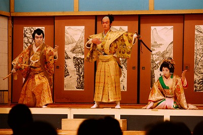 「大歌舞伎」「小芝居」「地芝居」という歌舞伎のビラミッドの 底辺を支えるのが、「地芝居」であり、この地方では、地歌舞伎と呼んでいます。元々地歌舞伎は庶民の娯楽であり、祭りの奉納芝居として始まったようです が、娯楽の多様化により各地で衰退していきます。しかしその後この地でも伝統を守ろうと、歌舞伎保存会が地歌舞伎を復活させ、現在に至っています。岐阜県 は現存する芝居小屋と歌舞伎保存会において、全国的に見ても突出しています。