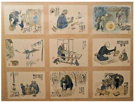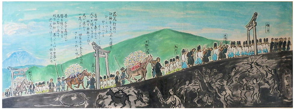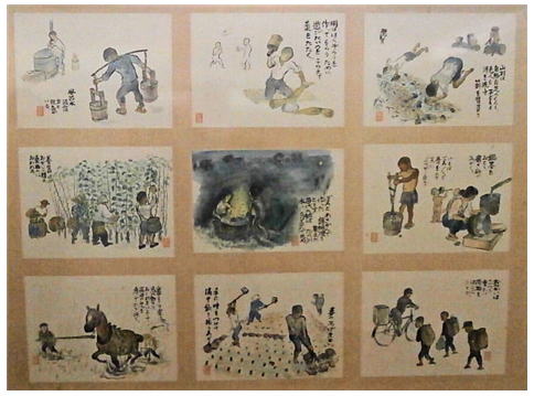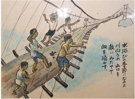 | 稲熊万栄氏は昭和3年坂下町握で生まれ、多感な少年期をこの地で育ち外に出て画家となられました。 昭和48年「昭和初年」と題し73枚にまとめられた水墨画を坂下町へ寄贈して下さいました。後に自薦展で展示され画集「喚声」におさめられています。 平成30年から坂下総合事務所の一室において常設展示をしています。事務所開館中は自由に楽しんでいただけます。 |